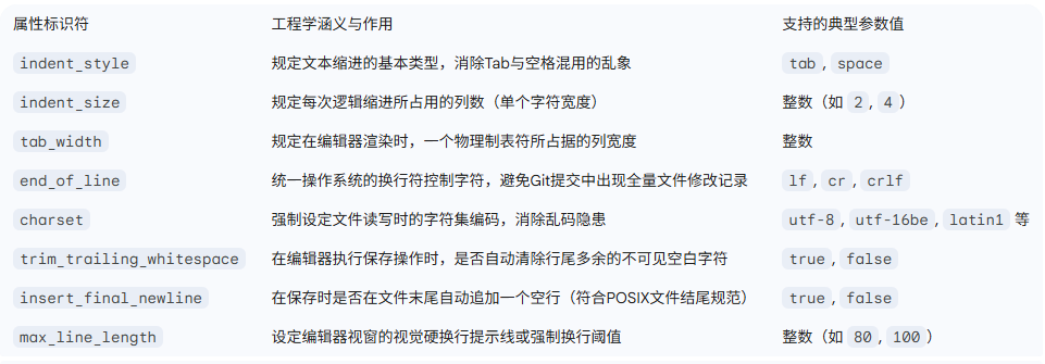 EditorConfig 是为了解决不同的操作系统,编辑器之间差异的。如 换行符,tab 字符的长度。对任何文本格式的文件生效。如 .md,Makefile,.yaml,.sh