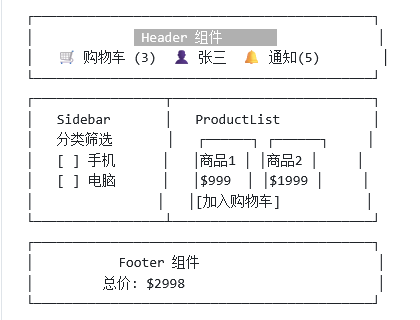 header,productList,footer 组件都会使用到购物车的数据。如果没有状态管理的话,会出现下面的情况